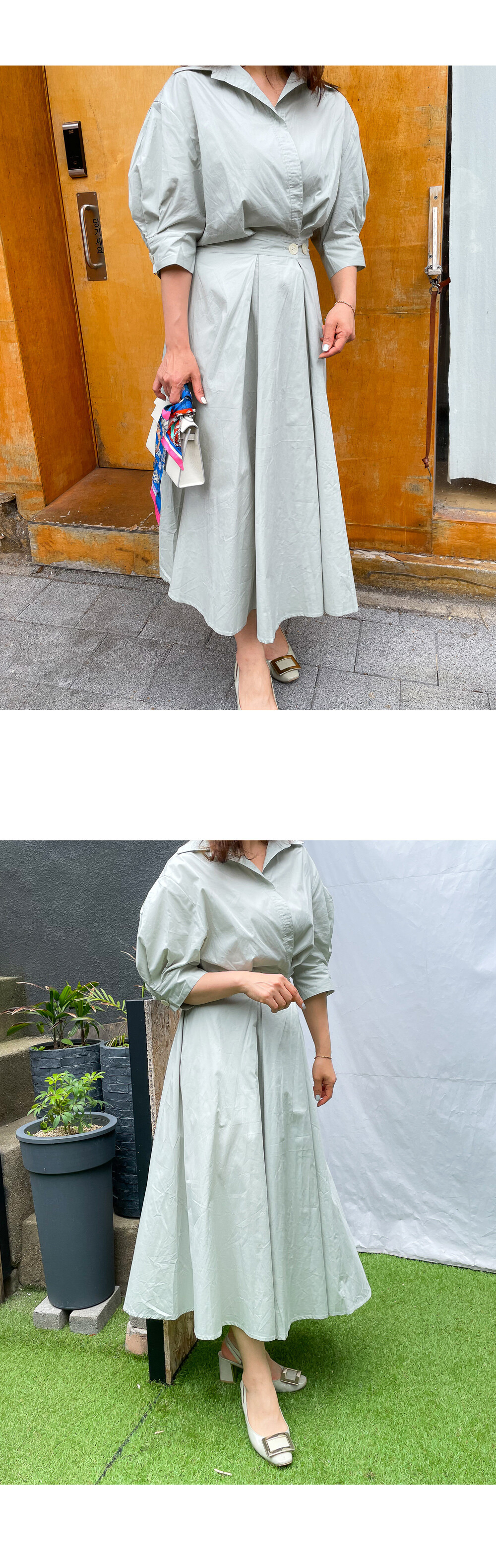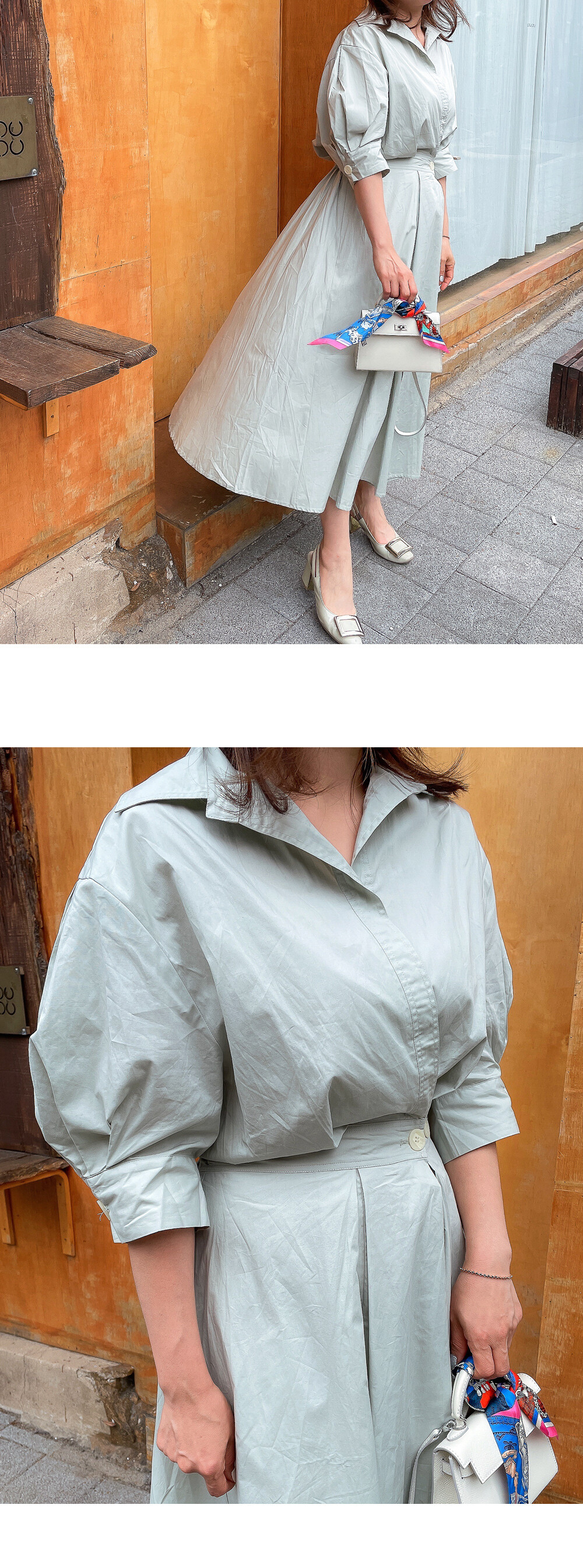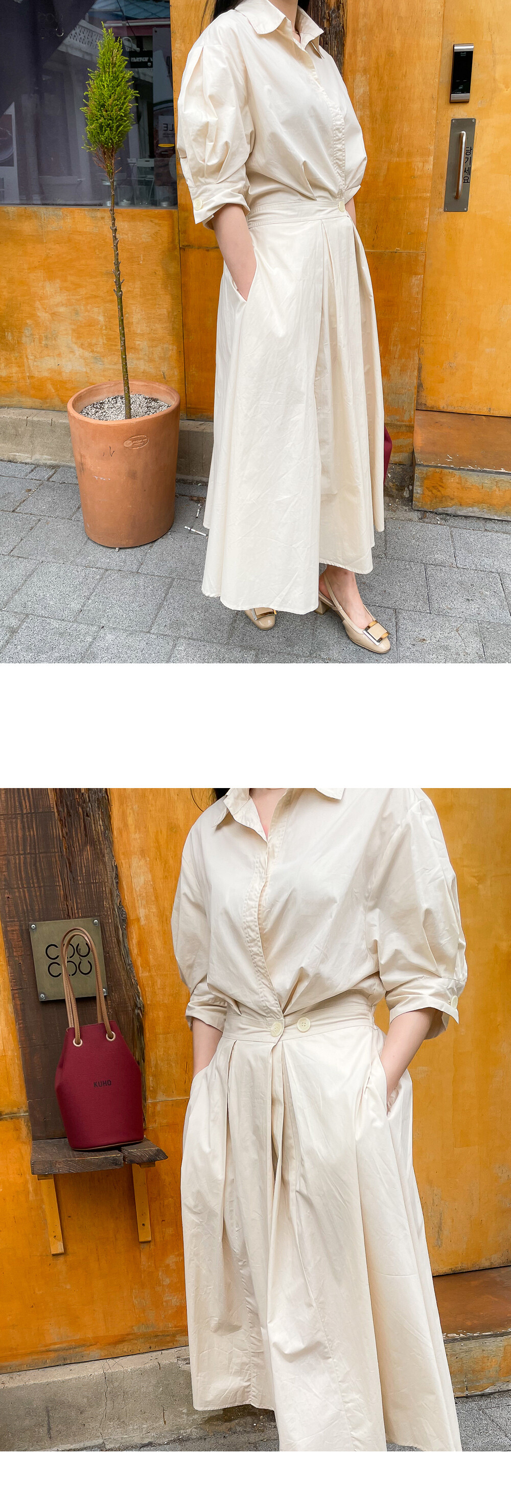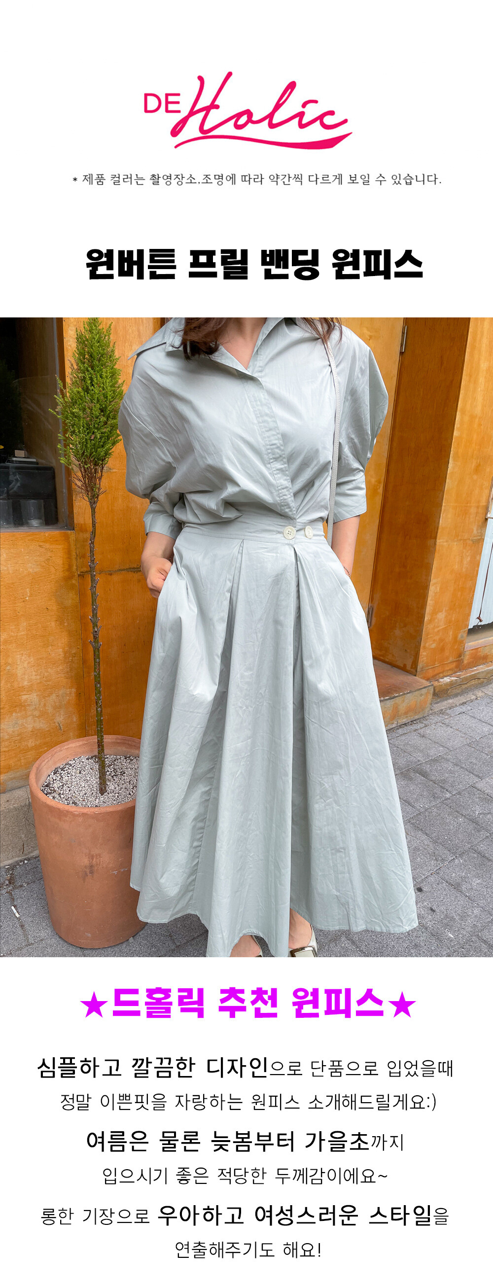 원버튼 프릴 밴딩 원피스