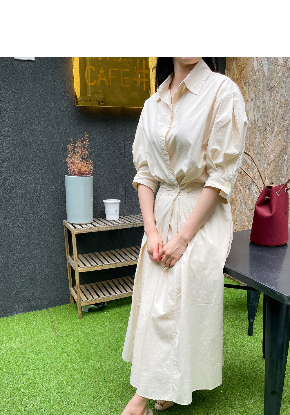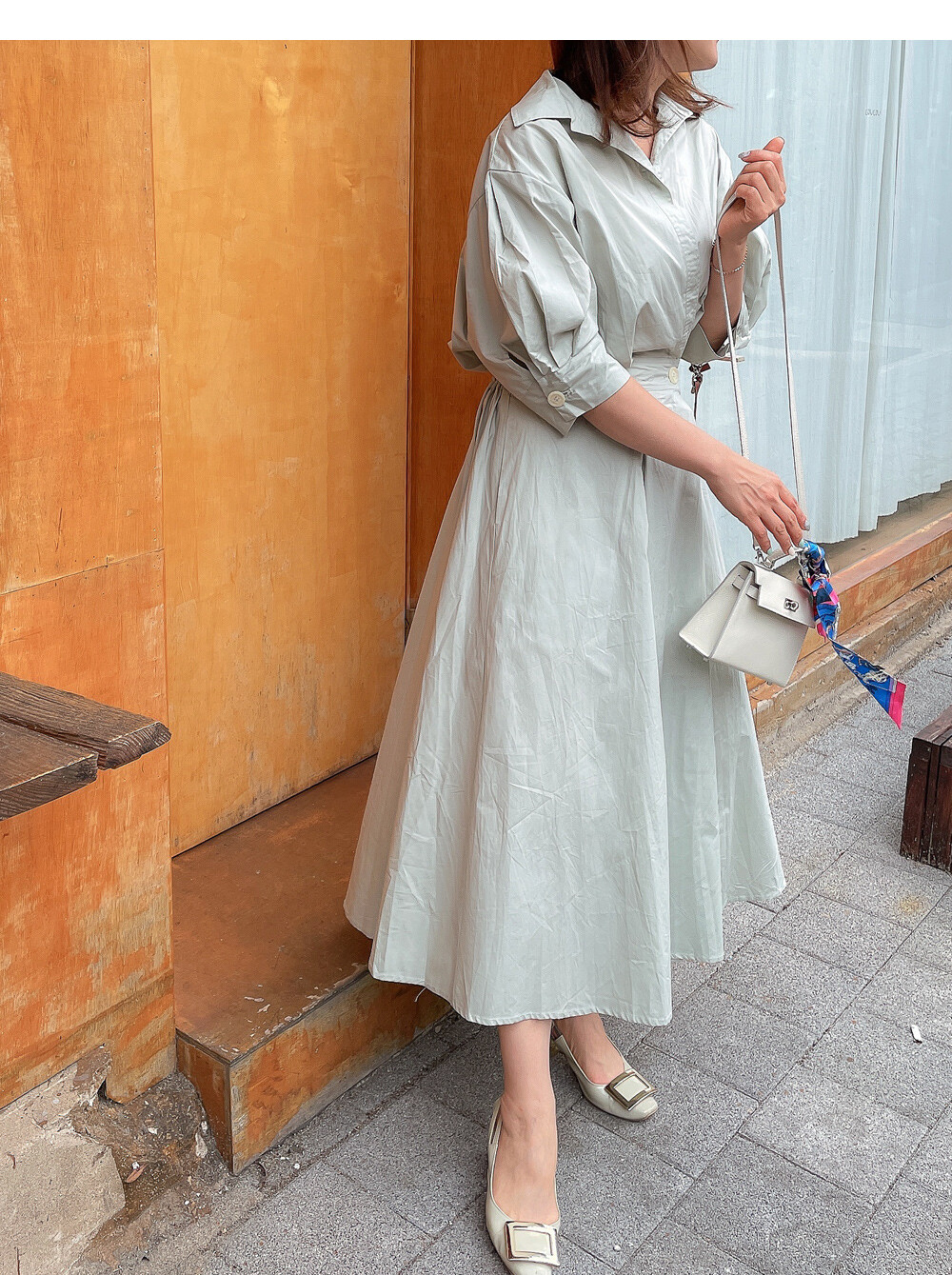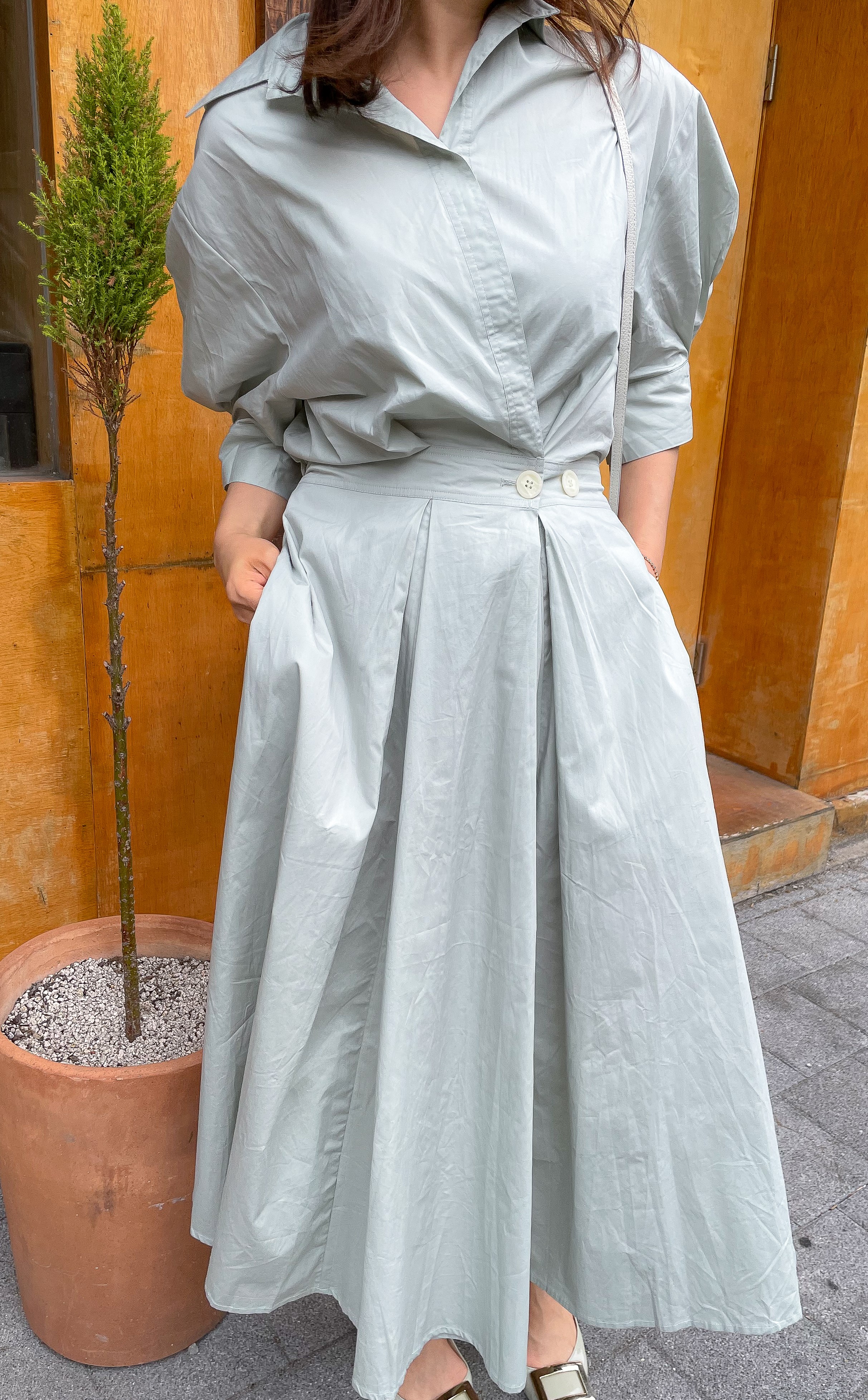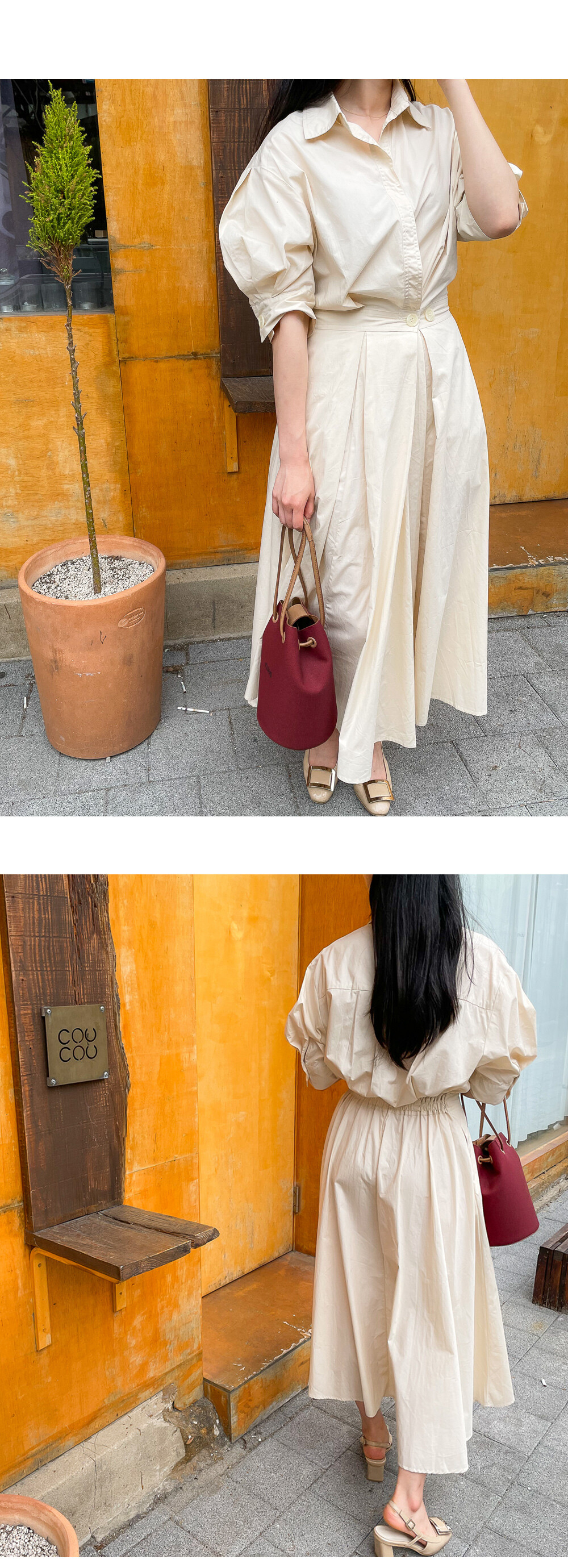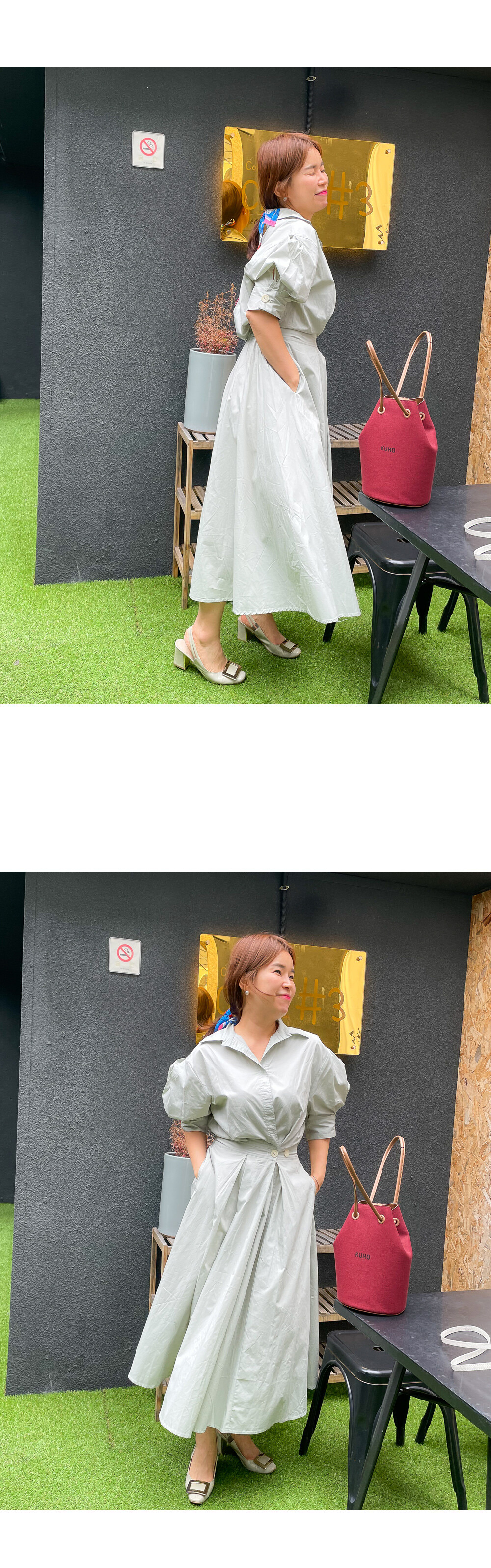 원버튼 프릴 밴딩 원피스
